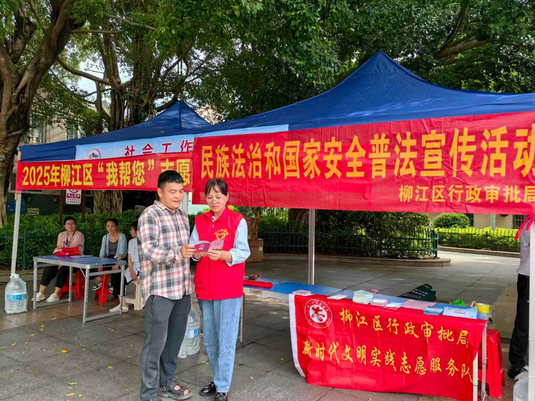 近日,柳江區行政審批局志愿者結合新時代文明實踐志愿服務“我幫你”活動開展垃圾分類宣傳活動。