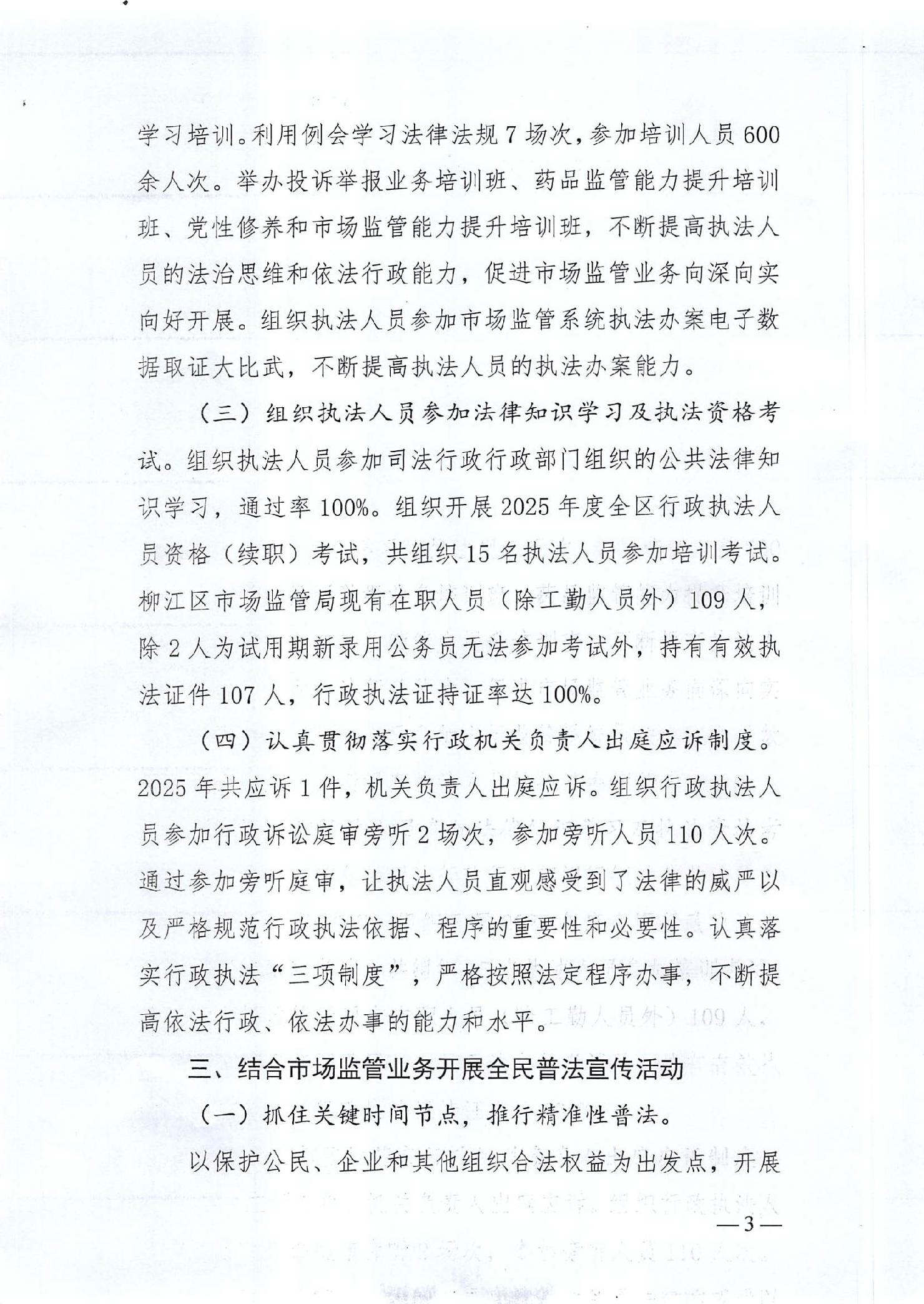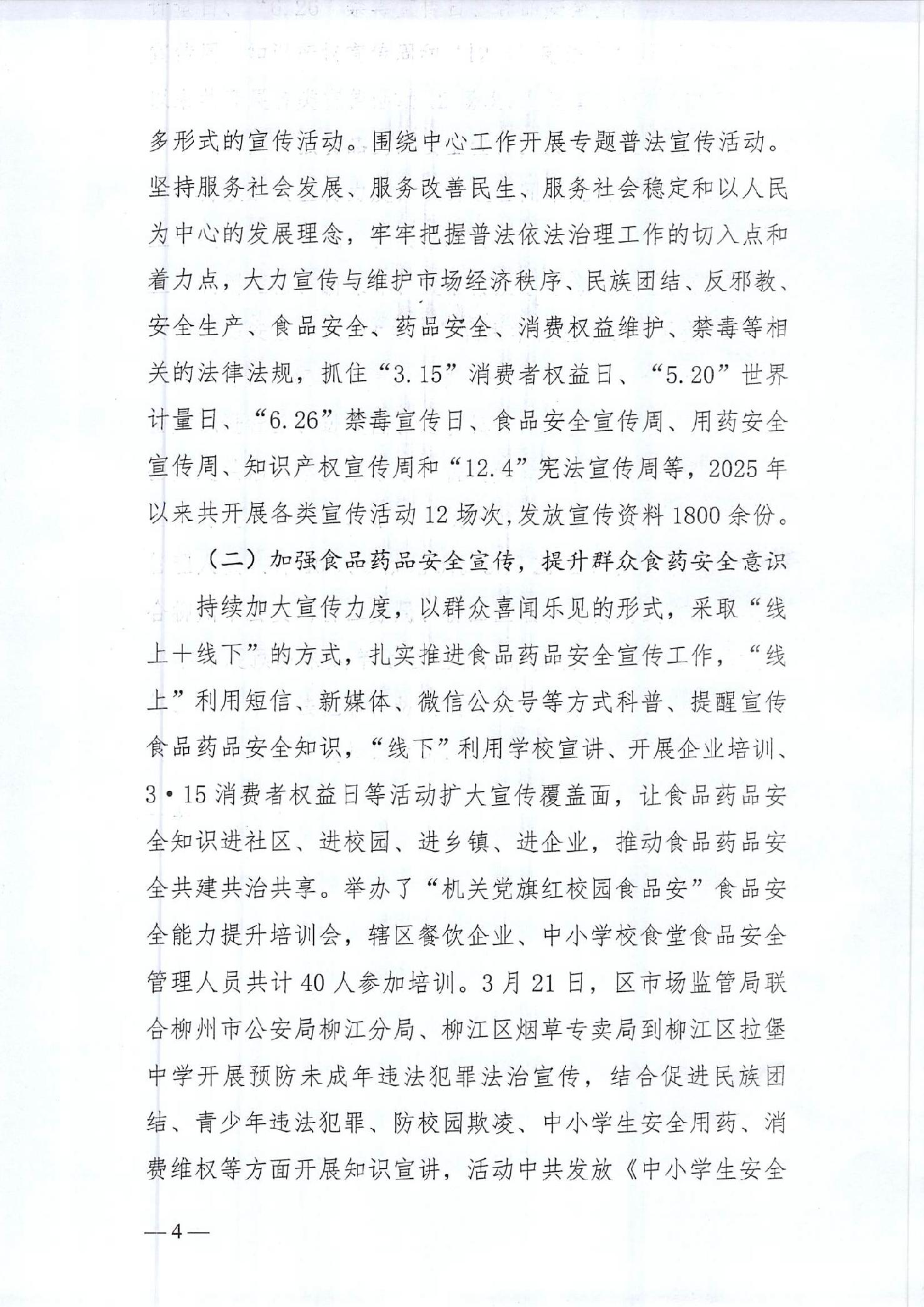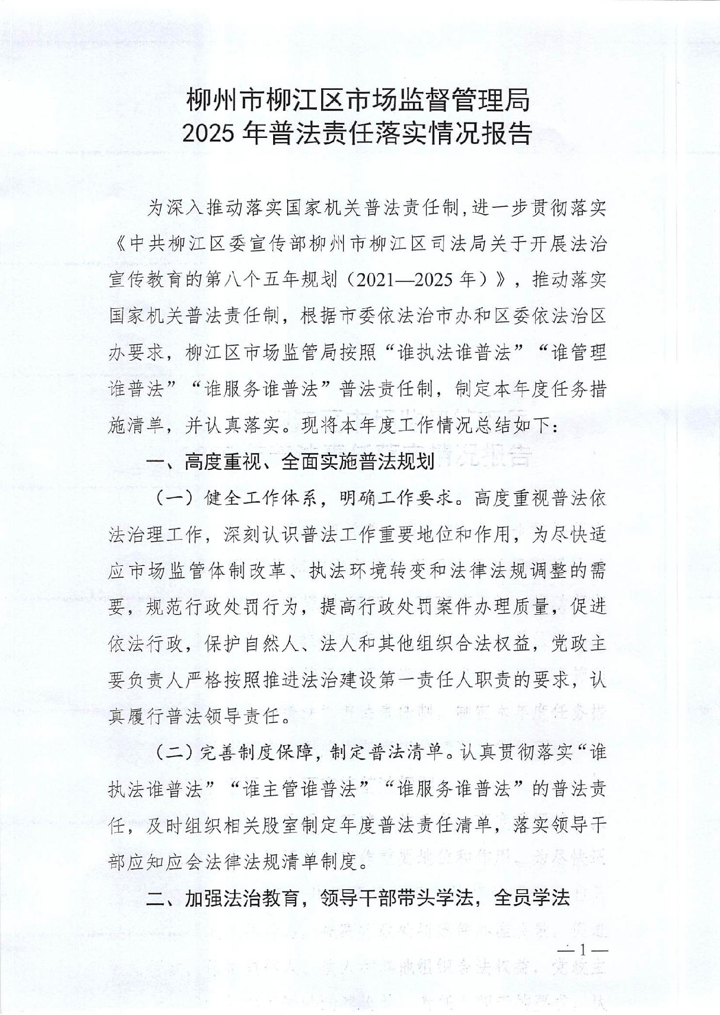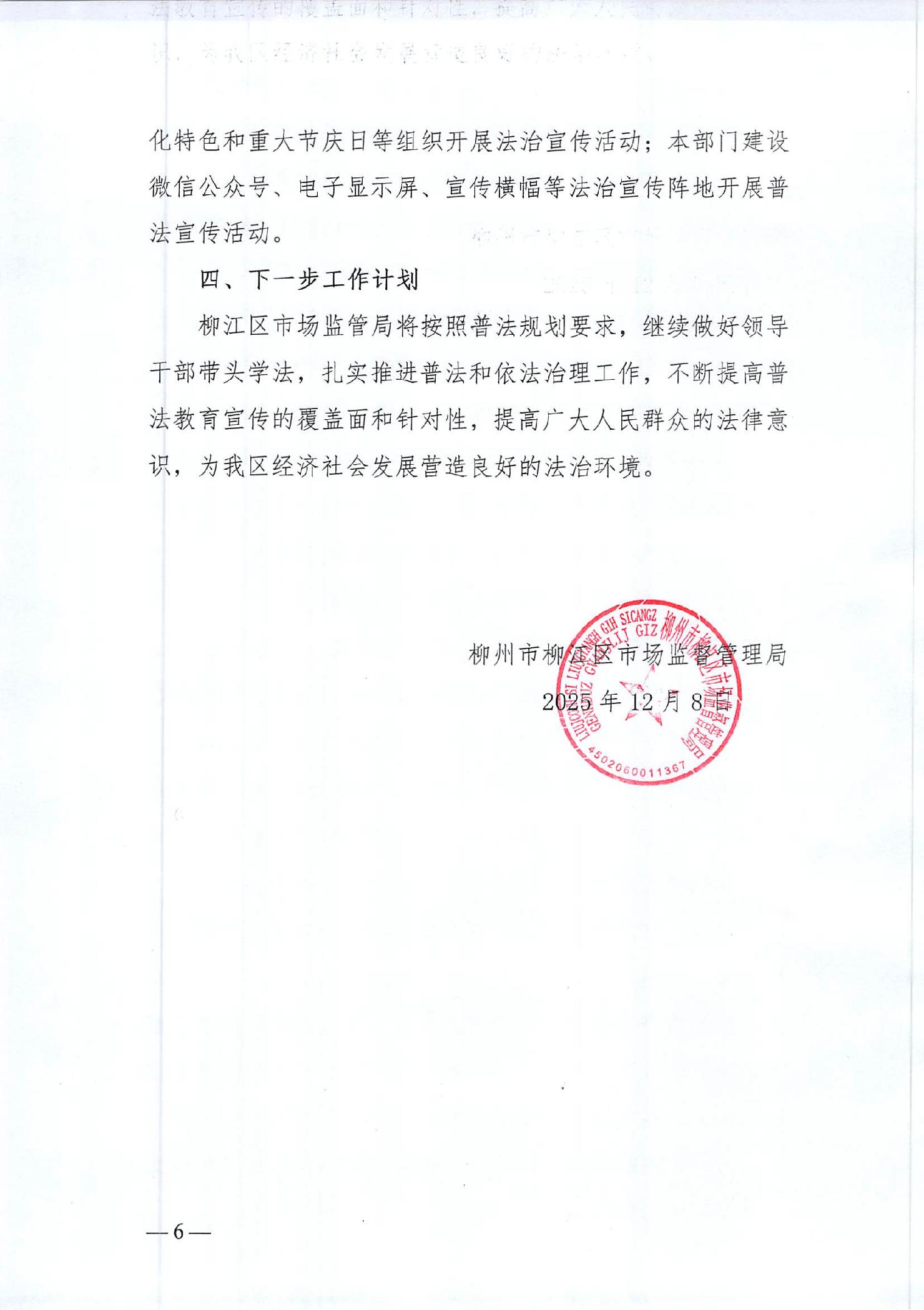柳州市柳江區市場監督管理局2025年普法責任落實情況報告