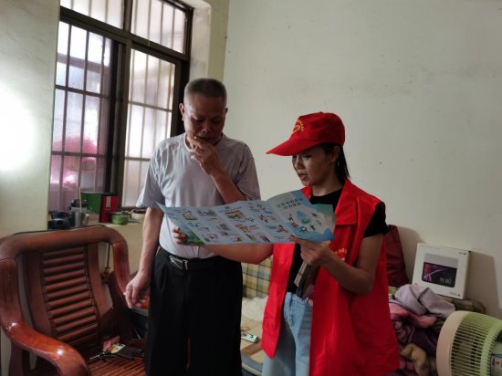 ??????????????????????志愿者給柳堡社區居民宣講《公民節約用水行為規范》宣傳冊