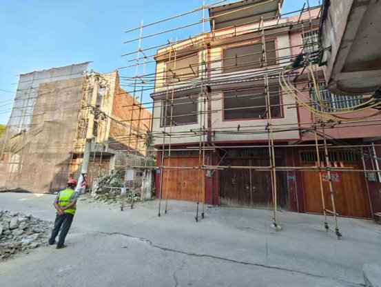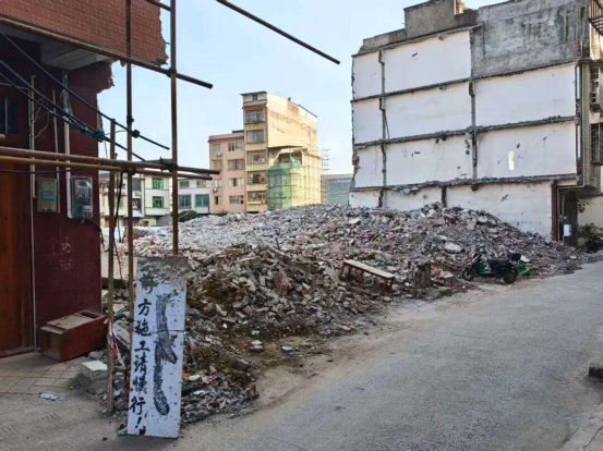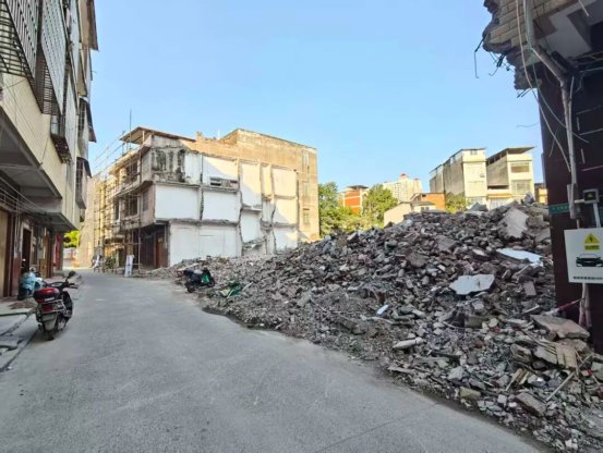 來到拉堡老街征遷施工現(xiàn)場,昔日靜謐的街道已然大變樣。目前項目征拆工作已經(jīng)接近尾聲,連日來,已有20棟沿街部分樓房完成拆除,只留下部分磚瓦碎石等待集體清運(yùn),還有部分已騰退清空的待拆除老屋,已經(jīng)安裝外部腳手架和防塵網(wǎng)等安全措施,即將開展進(jìn)一步拆除作業(yè)。