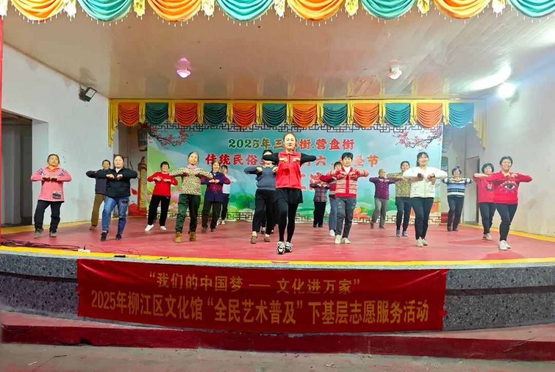 為深化文化惠民工程,進一步激活基層群眾文化活力,11月27日,三都鎮聚焦群眾精神文化需求,聯合柳江區文化館到三都社區開展“我們的中國夢——文化進萬家”全民藝術普及下基層志愿服務活動,把專業的舞蹈培訓指導送到群眾“家門口”,讓夜晚靜謐的鄉村舞臺瞬間變得熱鬧非凡。