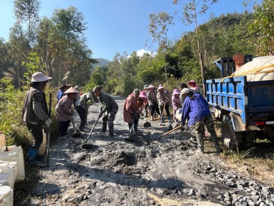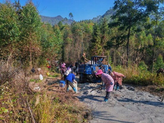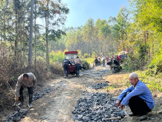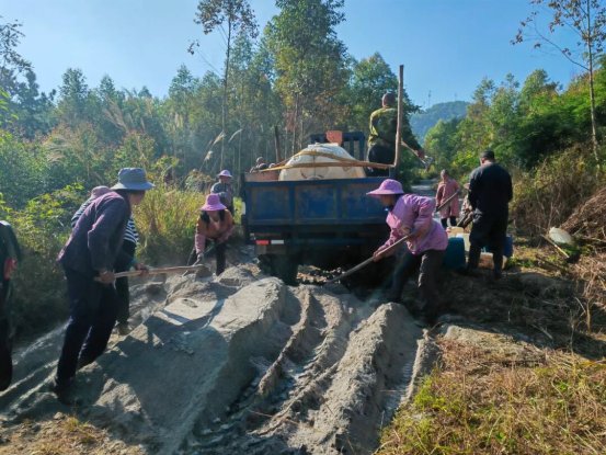 村民們分工協(xié)作,有的在敲擊石塊填平坑洼處,有的在平整剛倒下的水泥,有的則往返運送著水泥等建材……現(xiàn)場敲擊聲、談笑聲交織在一起,大家干勁十足,像一首充滿活力的鄉(xiāng)村交響曲,奏響了鄉(xiāng)村振興的奮進旋律。