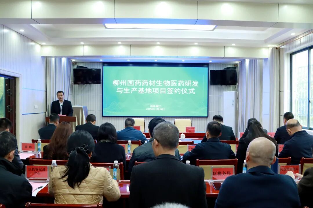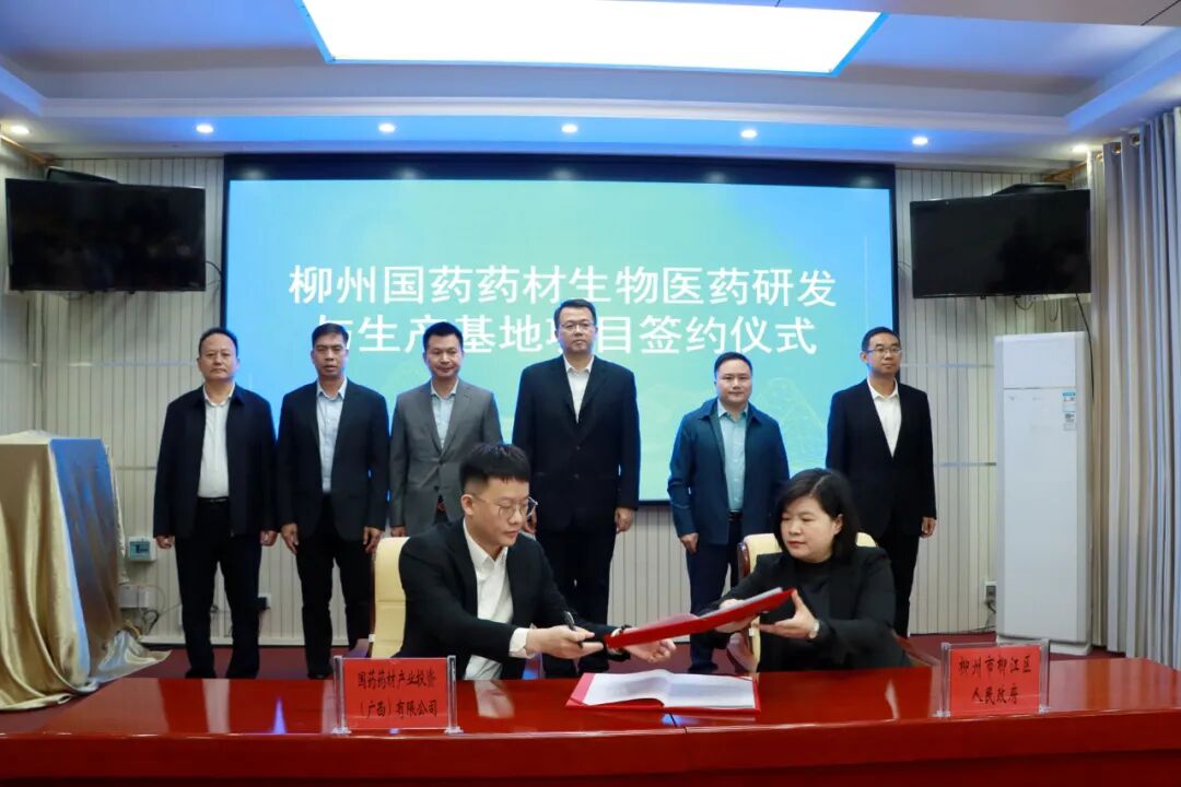 11月18日,柳江區人民政府與國藥藥材產業投資(廣西)有限公司在區政府會議中心舉行簽約儀式,總投資約4.53億元的柳州國藥藥材生物醫藥研發與生產基地項目正式落戶柳江,標志著柳江區生物醫藥產業發展邁出關鍵一步,迎來重要里程碑。區領導李團、張揚、姚芳、韋國養、吉富美,及企業方代表張利軍、李典倫、黃琳參加簽約儀式。