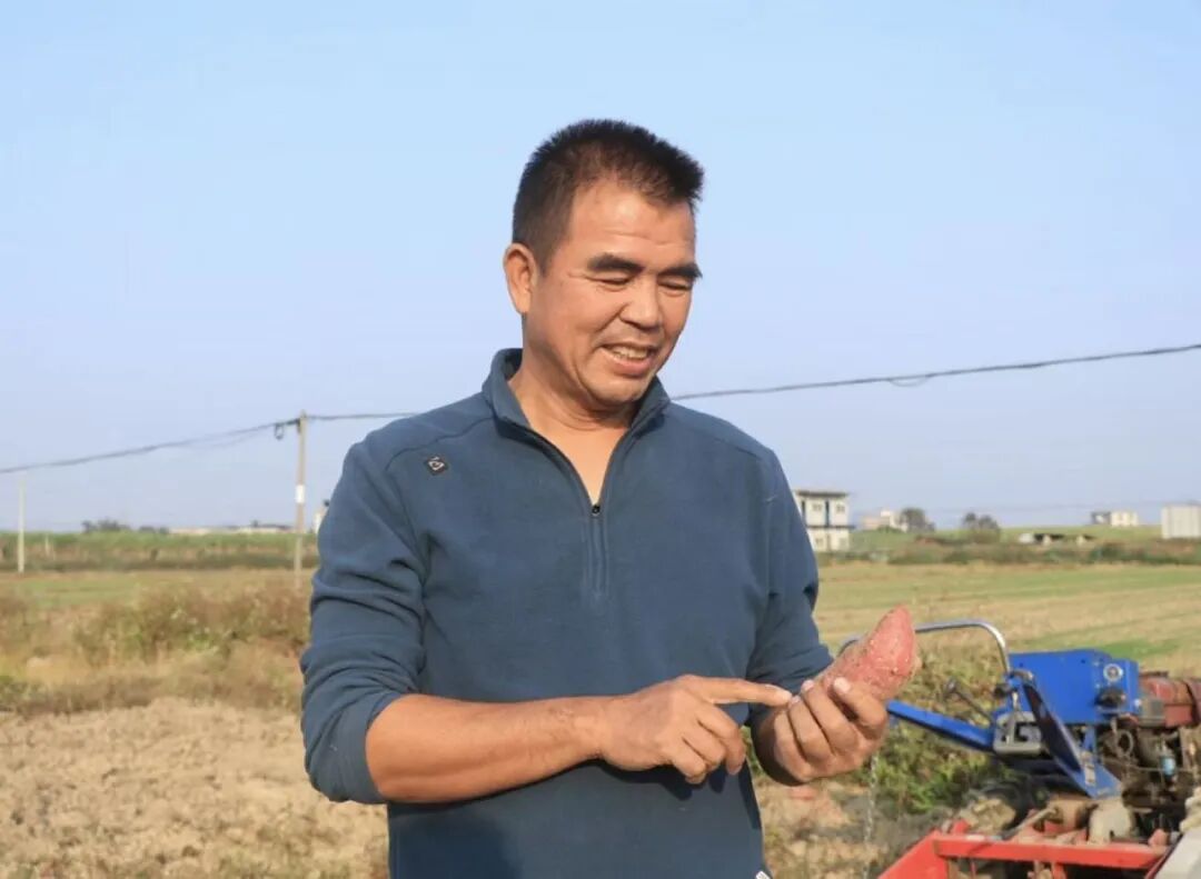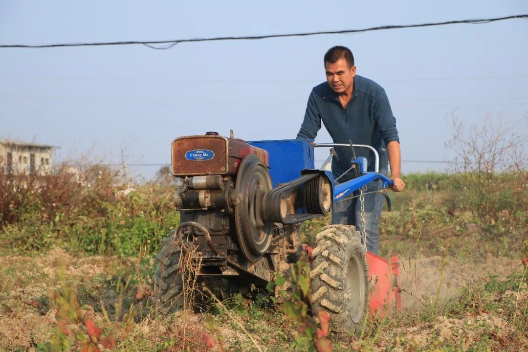 陳光基用手扶薯類收獲機挖掘紅薯。