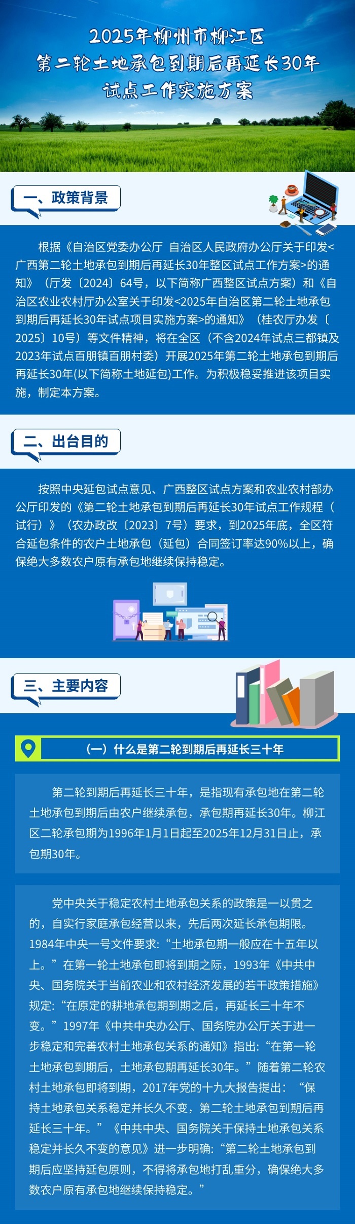 【圖解解讀】江政辦發(fā)〔2025〕8號《2025年柳州市柳江區(qū)第二輪土地承包到期后再延長30年試點工作實施方案》的政策解讀